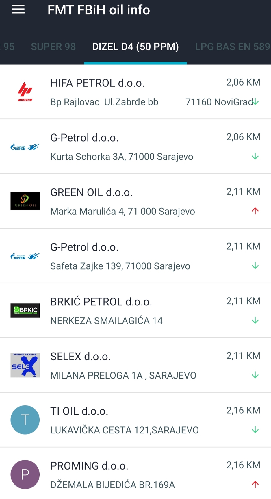 Na većini benzinskih pumpi u Federaciji BiH gorivo je pojeftinilo od početka ove sedmice. Ovo je bilo očekivano nakon što je smanjena nabavna cijena benzinskih i dizelskih goriva u veleprodajnom skladištu u Podlugovima. Cijena dizela snižena je između 10 i 14 feninga i kreće se od 2,06 KM do 2,26 KM po litru, objavljeno je na službenoj aplikaciji Federalnog ministarstva trgovine koja pruža informacije o trenutnim cijenama goriva na pumpama u BiH.
