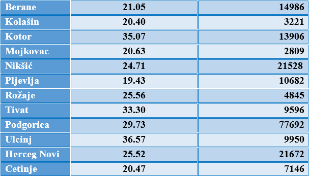 Prosječan septembarski račun za električnu energiju za domaćinstva na nivou Crne Gore (ukoliko se izuzmu neočitana mjerna mjesta u objektima koji nijesu stalno nastanjeni) iznosi 28.51 eura. Domaćinstva u Pljevljima bilježe najnižu prosječnu potrošnju u vrijednosti od 19.43 eura, dok je najveća prosječna potrošnja prethodnog mjeseca očitana u Ulcinju, gdje su domaćinstva u prosjeku potrošila električne energije u vrijednosti od 36.57 eura.